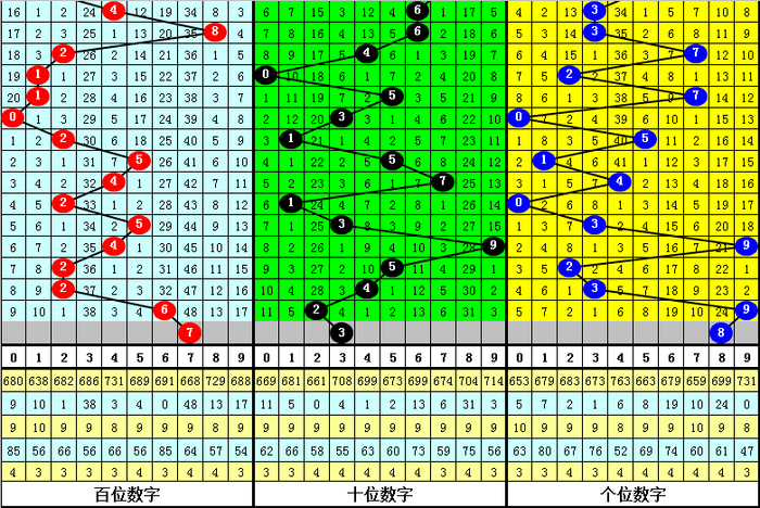 百十位差推荐:前三期百十位差分别开出3-2-4,本期防百十位差再出4。