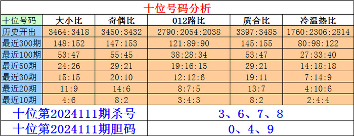 近期个位合数号码出现频率较低,上期出现之后,本期预计合数连续回补;近期该位大号走势较冷,上期开出之后,本期关注大号再出。个位杀号:0379,胆码关注:168。
