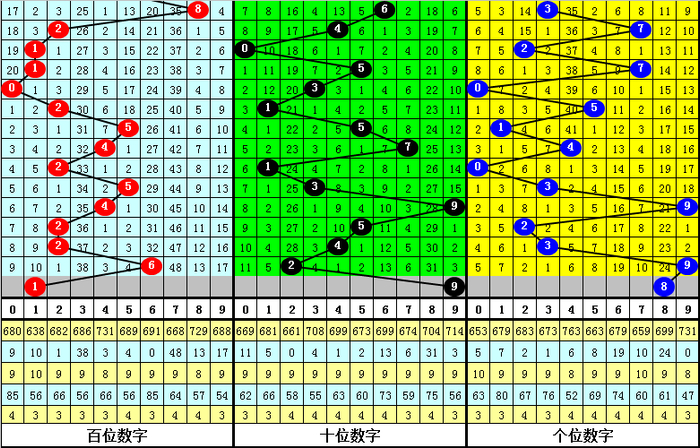 近期百位以小号为主,上期小号轮空之后,本期预计小号再出;该位奇号走势相对较冷,目前遗漏4期,本期看好奇号解冻。百位本期杀号:3469,胆码关注:157。