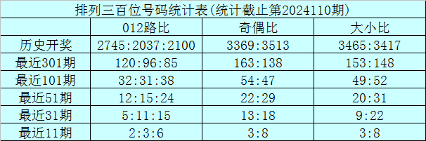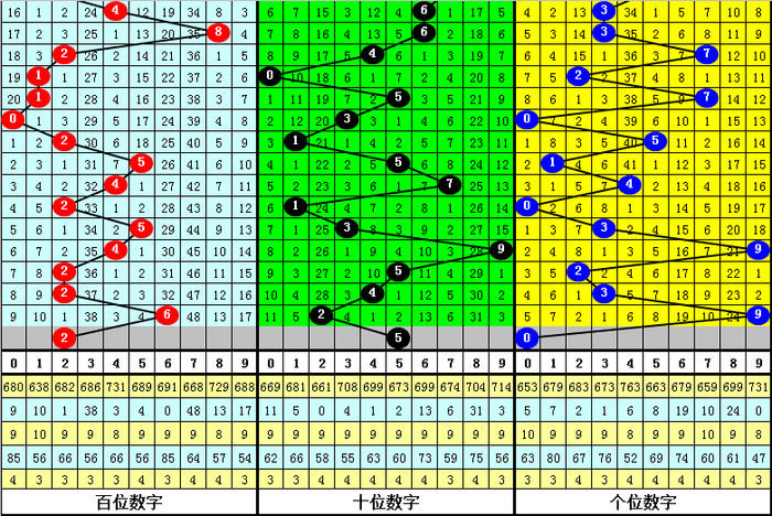 百位分析:该位上期奖号为6,出现0路、偶数、大号,在前11期奖号,该位012路比为2:3:6,0路号码最冷,目前012路号码遗漏期数分别为0、3和1,近期百位注意2路号码走热。