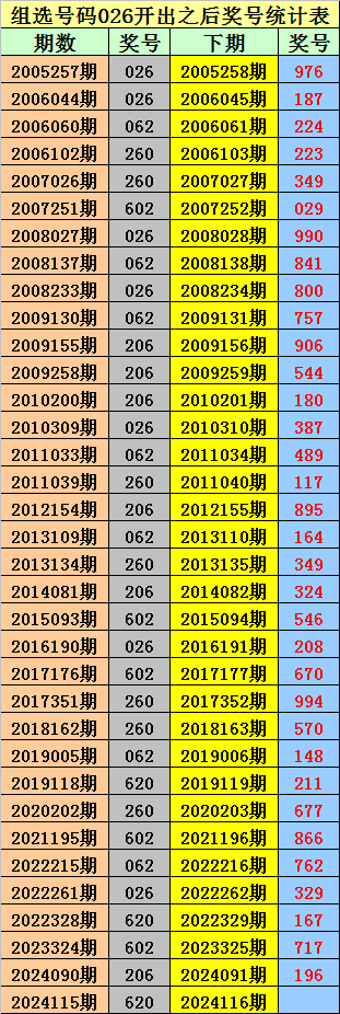 排列三组选026出现之后下期分别开出:976、187、224、223、349、029、990、841、800、757、906、544、180、387、489、117、895、164、349、324、546、208、670、994、570、148、211、677、866、762、329、167、717、196。