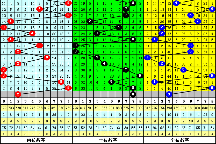 第三位上期开出奖号9,走大8点,本期看好该位走小,参考号码3。