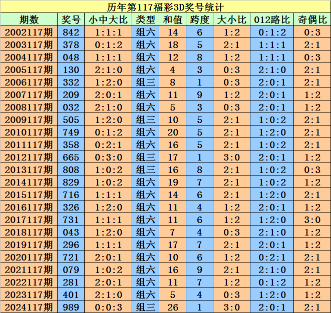 开奖回顾:福彩3D第2024117期奖号为:989。