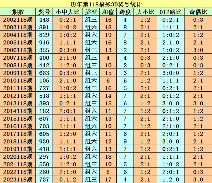 在历年同期开奖中,组三出现9次,组六开出13次,组六轮空1年,今年同期重防组六出现。