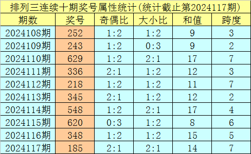 上期回顾:排列三第2024117期奖号:185。类型:组六,奇偶形态:奇偶奇,大小形态:小大大,和值:14,跨度:7。