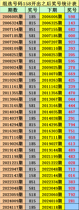 组选158之后,0-9号码分别开出: