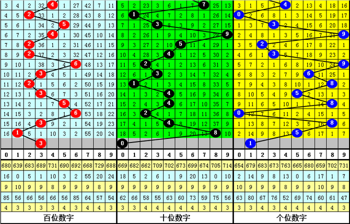 其中,组三开出3次,组六开出16,单选号码0-9分别出现: