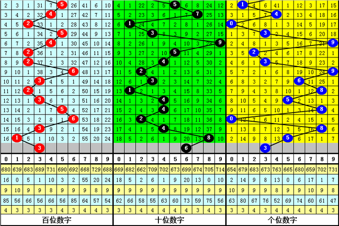 百位:上期开出1,近10期012路比为5:1:4,其中1路号遗漏9期再出,本期放弃1路号,关注0路号,看好3。