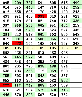 另外,历史上直选号码185开出7次,其下期开出奖号为:598、425、291、613、483、028,前后10期分别开出号码: