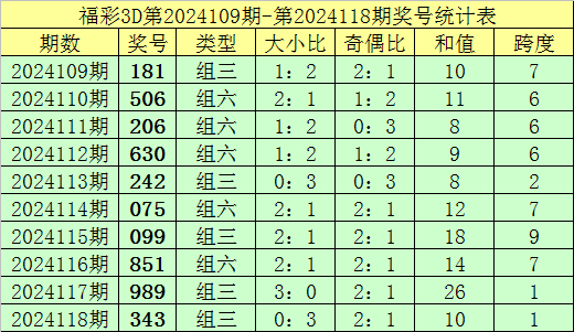上期回顾:福彩3D第2024118期奖号:343。