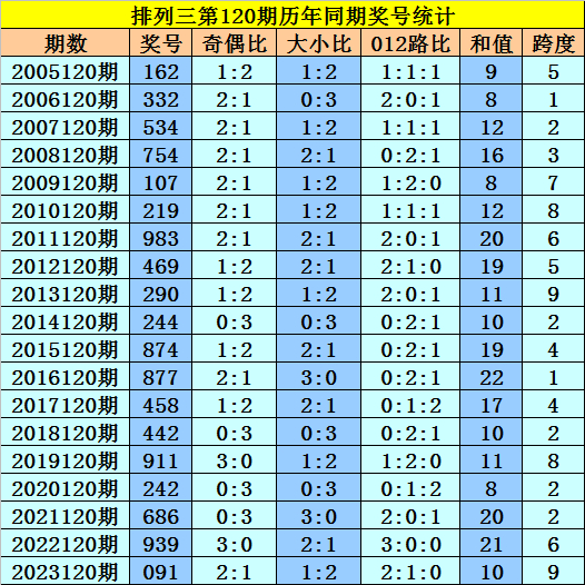 本期为排列三第2024120期开奖,历史上排列三第120期已开出了19期奖号了: