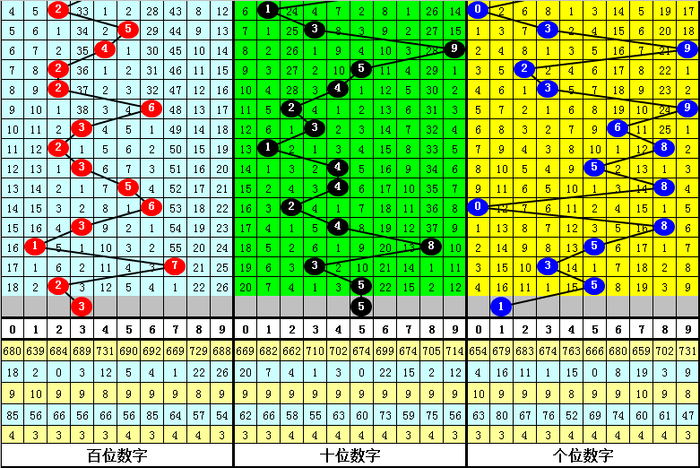 历史同期第120期十位号码开出为:6、3、3、5、0、1、8、6、9、4、7、7、5、4、1、4、8、3、9,振幅为9个点位,大小号码比例为10:9,奇偶号码比例为11:8,012路号码比例为8:7:4,本期预计十位出现2路号码,独胆关注5。