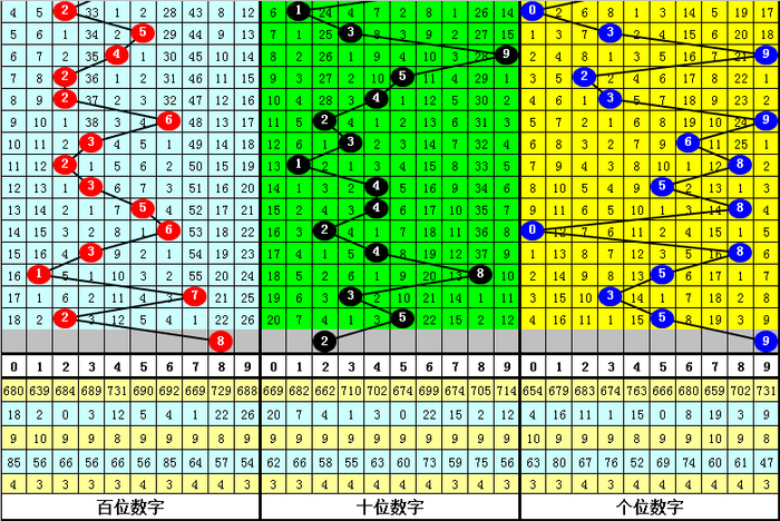 跨度分析:最近5期分别开出跨度:6、5、7、4、3,本期预计跨度走大,一码跨度参考7。