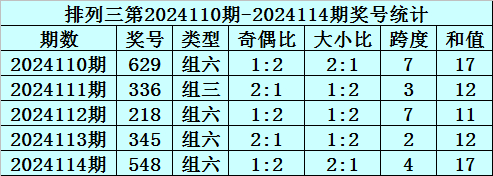 组选类型判断:最近5期排列三开出3次组六号码,本期重点关注组六号码出现。