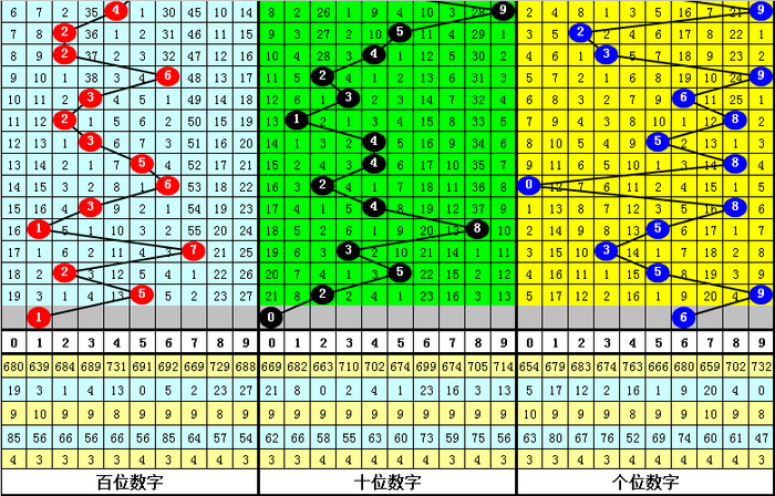 另外,在组选0-9的号码分布中,号码2、9表现最冷,开出10次;号码8走势最热,开出了15次。本期防号码组289全部轮空。