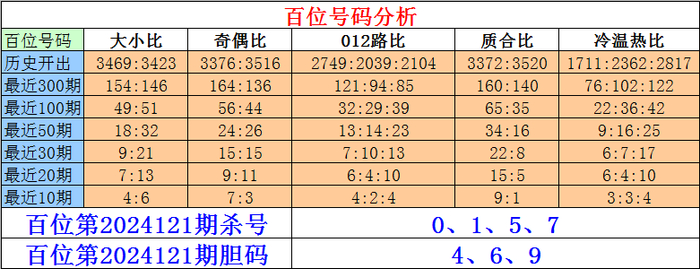 排列三百位第2024121期杀号:0、1、5、7