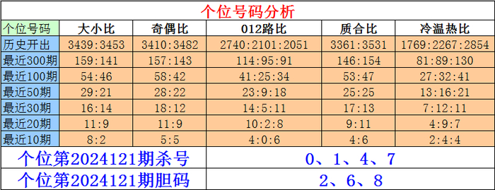 排列三个位第2024121期杀号:0、1、4、7