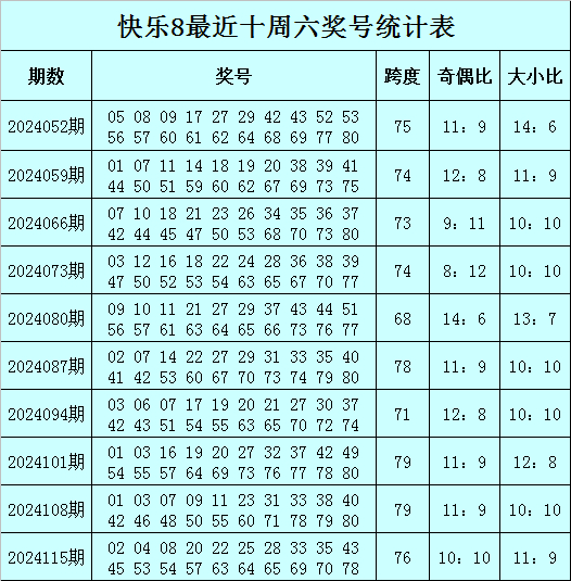 福彩快乐8第2024115期开奖回顾:02 04 08 20 22 25 28 33 35 43 45 53 54 57 63 64 65 69 70 78,其中奖号奇偶比为10:10,大小比为11:9,012路比为7:7:6,首尾间距为76。