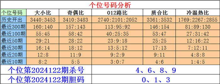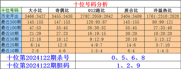 近期个位合数号码出现频率较低,最近2期连出,明显转热,本期预计奖号再为合数;近期该位小号出现相对较少,目前连续轮空3期,本期预计小号回补。个位杀号:4689,胆码关注:013。