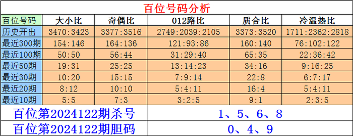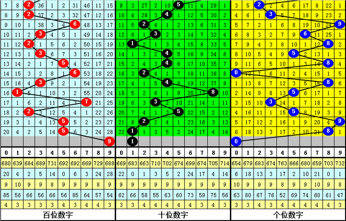 近期百位大号表现较冷,目前连出2次,有明显的转热迹象,本期看好大号再出;该位奇号明显较热,目前连续开出2期,短期内不会转冷,本期再出奇号。百位本期杀号:1568,胆码关注:049。