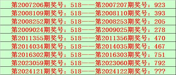 排列三第2024121期开出奖号518,该号码直选类型历史上出现了9次,前8次开出之后期下期奖号为:923、393、205、278、470、467、751、792,见下表: