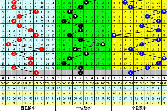 百位:上期开出2,偶数,偶号最近两周开出较少,连出1期,本期再次开出,参考6。