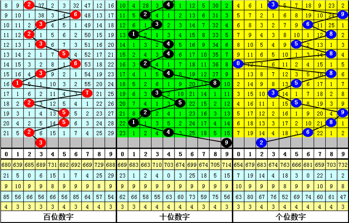 百位目前最冷号码为:9,当前遗漏29期,该号码历史最大遗漏为54期,本期防百位9解冻;