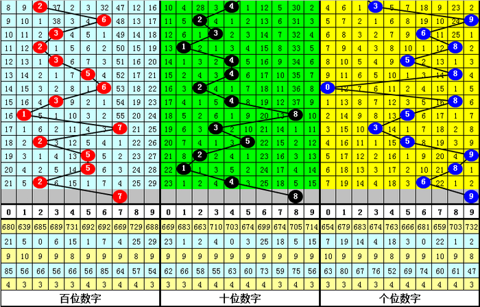近期百位大号表现较冷,目前轮空1期,本期防大号回补;该位奇号明显较热,目前仅轮空一期,本期预计再出奇号。百位本期杀号:2368,胆码关注:057。