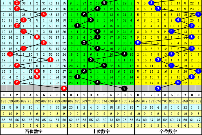 第一位杀号:上期第一位奖号为2,第一位奖号2历史上出现685次,前100次该位开出奖号2之后,下期号码0-9出现次数从高到底分别为:号码1、0→15次,5→14次,2、4、7→10次,9→9次,3→8次,8→5次,6→4次。