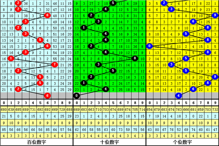 百位:1、2路号较热,本期防0路号反弹,关注6。