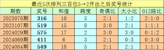 1、排列三最近两期百位号码分别开出5和2,历史上百位号码连续两期分别开出5和2的奖号出现了66期。前五期开出之后其下期奖号分别为:316、519、575、411、549;