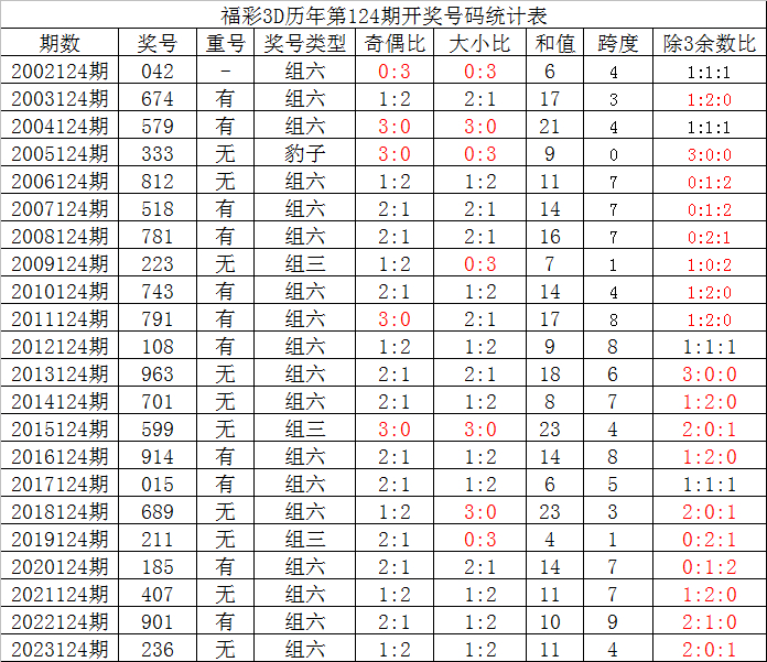 其中,豹子号码出现1次,组三号码开出3次,组六号码出现18次,上期奖号为组六号码,本期预计继续开出组六号码。