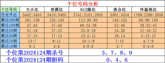 近期个位合数号码出现频率较低,最近4期连出,明显转热,本期预计奖号再为合数;近期该位大号热出,大号连出5期,本期继续关注大号。个位杀号:3789,胆码关注:046。