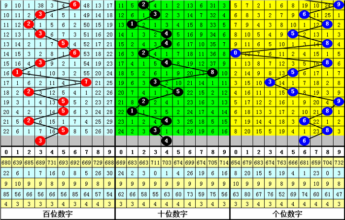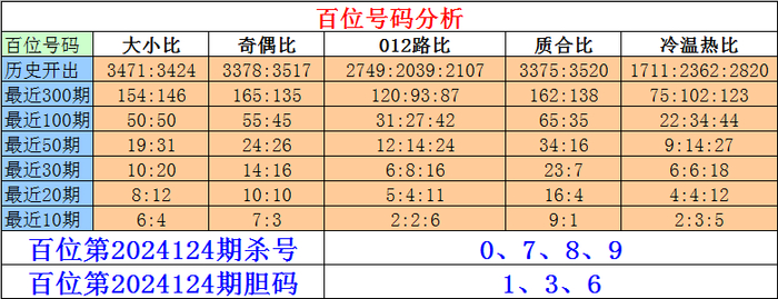 近期百位小号走势低迷,目前仅遗漏1期,本期防小号再次回补;该位奇号明显较热,上期开出之后,本期预计奇号重复出现。百位本期杀号:0789,胆码关注:136。