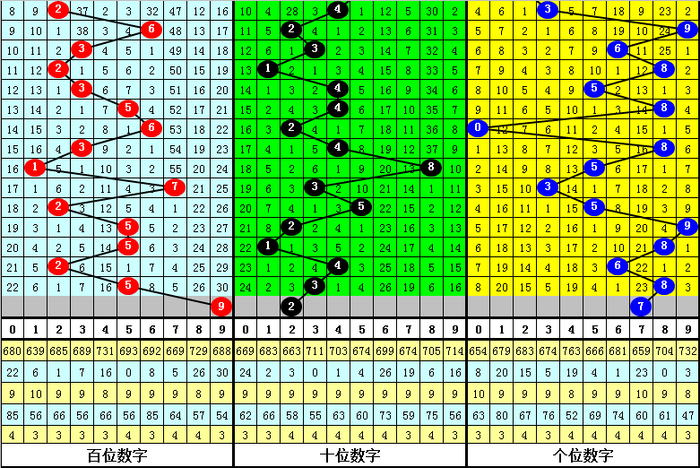 (2)在排列三第2024123期奖号中,最冷的7码组六遗漏32期,在这32期奖号中,组六号码开出23期,出现概率为72%,半顺组合开出11期,含4期全顺组合,开出概率为34%;杂六组合开出12期,开出概率为38%。