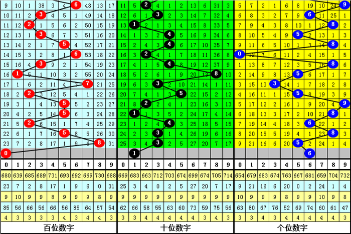 百位分析:上期出现号码8为:大号、合数,在连续9期开奖中,百位分别为:小号、质数:3;小号、质数:1;大号、质数:7;小号、质数:2;大号、质数:5;大号、质数:5;小号、质数:2;大号、质数:5;大号、合数:8,其中小号出现频繁,合数出号较少,百位本期预计开出小号、合数。