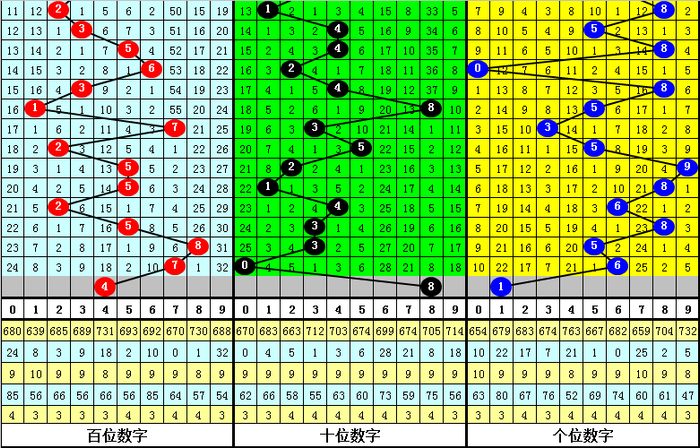 上期第二位奖号为:0,间隔25期之后开出,表现相对冷,前面10期该位温码开出频次较低,短期内适当关注温冷出现,关注号码8。