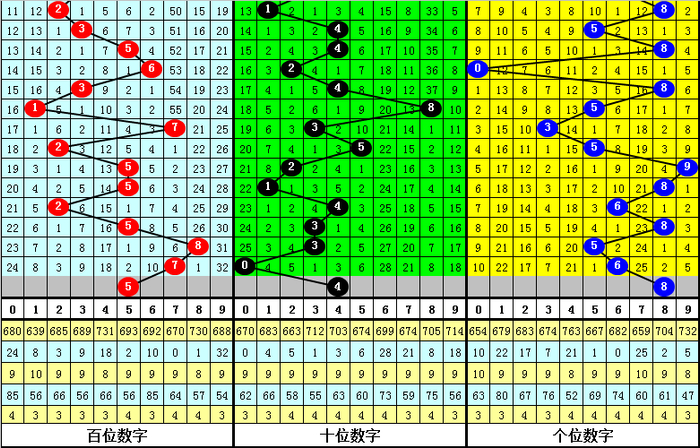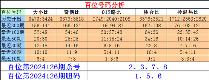 近期百位大号明显较热,当期连出3次,本期注意大号继续出现;该位奇号明显较热,上期开出之后,本期预计奇号重复出现。百位本期杀号:2378,胆码关注:156。