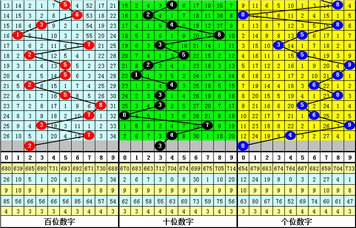 上期第二位奖号为:4,间隔4期之后开出,表现相对热,前10期该位热码开出次数较少,本期注意该位热码逐渐回暖,关注号码3。