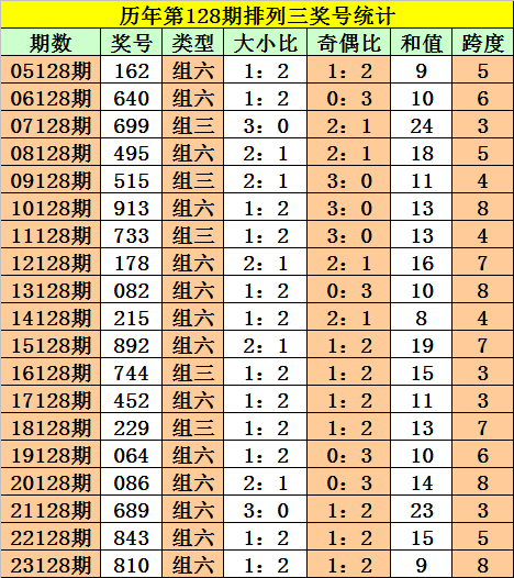 历年第128期排列三奖号:162 - 640 - 699 - 495 - 515 - 913 - 733 - 178 - 082 - 215 - 892 - 744 - 452 - 229 - 064 - 086 - 689 - 843 - 810。