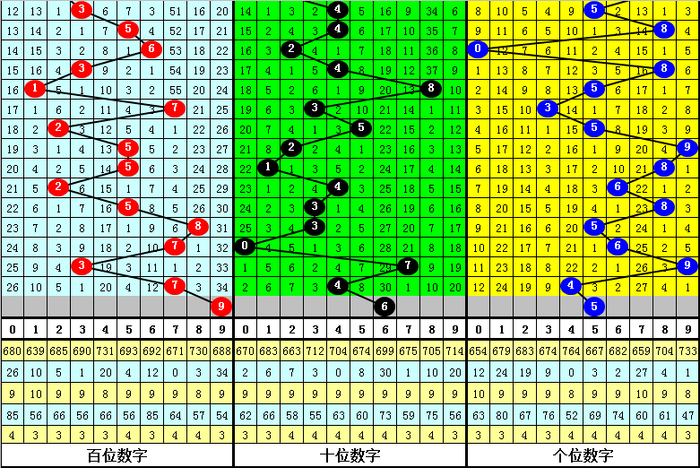 历年第128期排列三奖号中,开出次数最多三码为:2、4、9,本期注意号码:9。