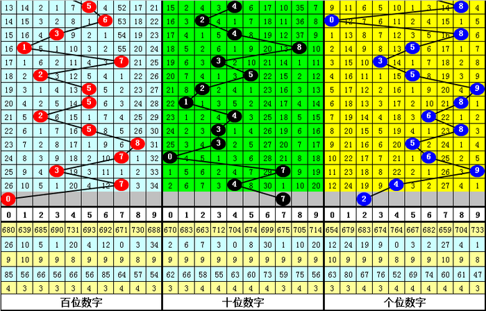 百位上期开出号码7,为奇数,偶数号最近出现次数较少,目前连续轮空3期,表现较冷,本期防止解冻,参考0。