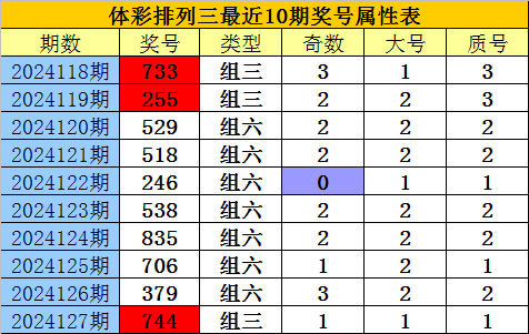 开奖回顾:排列三上期开奖号码为:744,大小比为1:2,奇偶比为1:2,质合比为1:2。