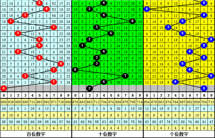 另外组选分布中,号码大小比为9:6,小号出现相对较少;号码奇偶比为9:6,偶数号码开出比例较低;号码012路为6:5:4,基本持平。