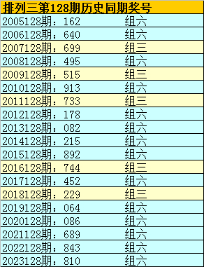 则,排列三第2024097期奖号:863,与排列三第2024128期奖号可能有相同的号码。且排列三第2024128期奖号大小比、奇偶比和012路比可以参考第2024097期奖号形态:大大小、偶偶奇和200路。