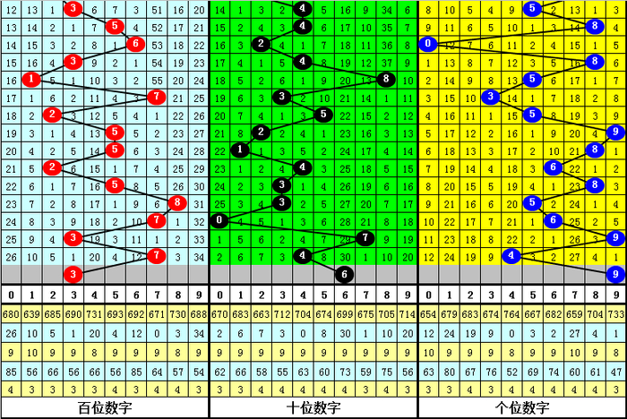 012路类型分析:上期出现全1路组合,在连续100期开奖中,全1路组合开出4期,本期防出现全0路奖号。