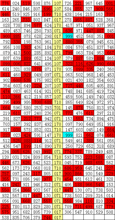 另外,在组选0-9的号码分布中,号码1表现最冷,开出5次;号码7走势最热,开出了17次。本期防号码组17全部轮空。