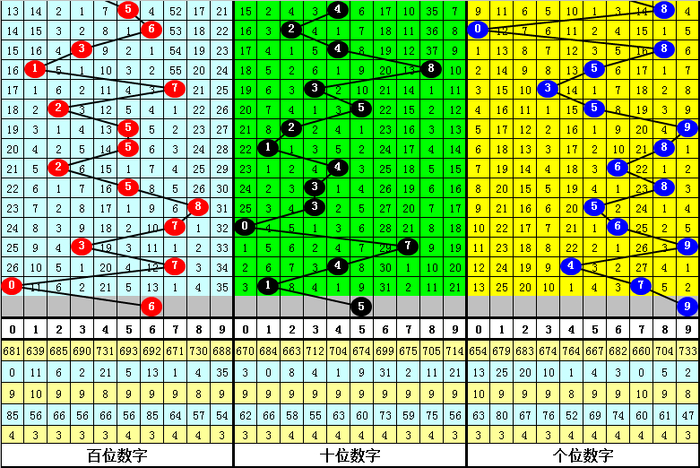 百位:1、2路号较热,本期防0路号反弹,关注6。