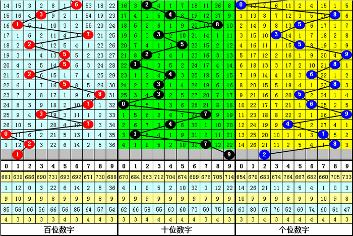 从以上统计可以看出,百十位两码合差9与5同时出现之后其下期两码合差表现最热的4个分别为:0256,本期百十位两码合差可以参考这四码中的数据。
