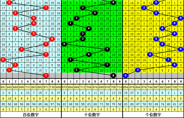 十位目前最冷号码为:6,当前遗漏33期,该号码历史最大遗漏为73期,本期不看好十位冷码6解冻;